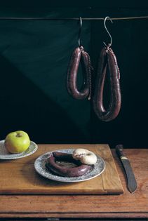 In times when food was scarce, animals would be bled to create black pudding in trays or as cakes. A little milk and oatmeal would be added, and the pudding would be the only source of protein. From letters of the period, we know this custom was still very mu