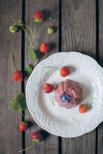 This dish was simply referred to as ‘Strawberry’ in the fifteenth century cookery manuscript where I found it. It was listed along with the same dishes all using different flavourings, such as violets, primroses and red roses. However, when making this pudding it becomes clear that this is the ancestor of the modern blancmange, made without meat and using cornflour (cornstarch) as a thickener along with all kinds of flavourings.
