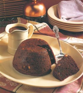 This recipe provides a double-chocolate hit, with a rich hot or cold chocolate sauce to pour over a chocolate-chip pudding. Alternatively, you could serve the pudding with just cream or crème anglaise.