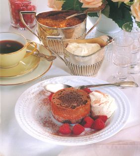 The ‘fondant’ aspect of these simple but devastatingly effective chocolate fixes is the hot centre, which spills slowly across the plate when the crisp shell of the soufflé is broken open.