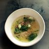 This dish is a textural treat. It differs from the traditional Chinese congee in the use of a Japanese crushed glutinous (or sticky) rice called ‘domyojiko’, which gives a denser, stickier consistency than regular long-grain rice. The rice is then topped with a light, slightly thickened broth containing the sweet juicy crabmeat, creating a wonderful combination of textures.