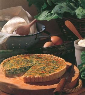 The classic combination of spinach and ricotta cheese, subtly enhanced with the flavour of nutmeg, makes a delicious filling for this vegetarian quiche.