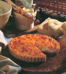 Slices of ham in a creamy white sauce, topped with golden-brown melted cheese make this a popular tart with adults and children alike. A variation of this recipe could be made by using smoked ham or by adding a little Dijon mustard to the sauce.