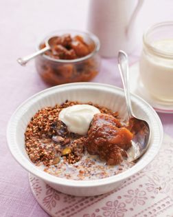 Homemade granola is infinitely more tasty than bought cereal, and you can make it to your own preferences with different quantities of dried fruit, nuts and seeds. Quinoa toasts beautifully in a hot oven, helping to give this granola a lovely crunch that is complemented by a fruit compote. Make double quantities and store in an airtight container.