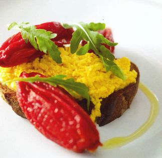 Perfect scrambled eggs with tomatoes on toast