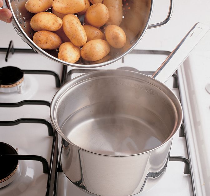 There are several variations on this chilli and potato dish, but the most important thing is the spicing, which is made hotter still by adding vinegar. The classic version is made with fresh tomato sauce flavoured with garlic and chilli. The name bravas implies that the potatoes are so hot that it is manly to eat them.
