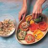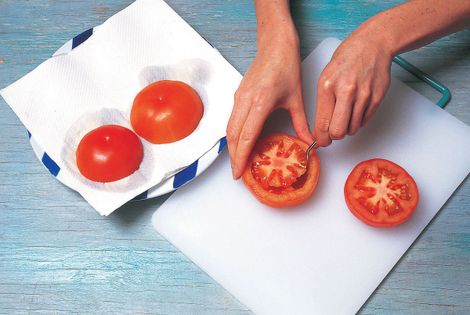 Colourful peppers and tomatoes make perfece containers for a simple rice, nut and herb stuffing. The vegetables become deliciously sweep and juicy when baked. Serve Tomates y Pimientas Rellenos as a substantial starter or a supper dish.