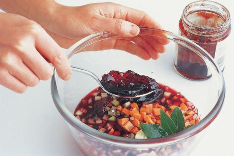 Great clouds of migrating pigeons fly over the mountains of Spain twice a year, and shooting them is a big sport. Here they are marinated in spiced vinegar and red wine, then cooked in the marinade. Reared squab can also be used. Cabbage is a familiar partner to pigeon, but puréed celeriac also goes very well.