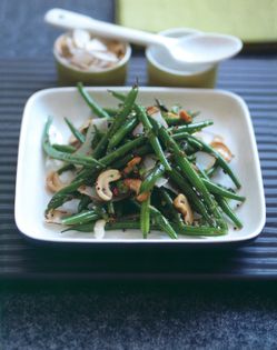 A thoran is a Keralan stir-fry using freshly grated coconut, the basic spices being mustard seeds, curry leaves and chillies. Further south, towards Tamil Nadu, it is known as a poriyal. You can use numerous other vegetables, for example spinach, beetroot or carrot, as an alternative to the beans.