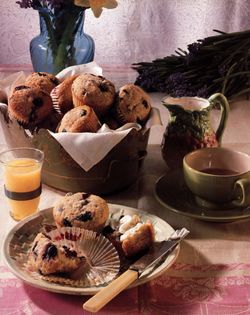 A good blueberry muffin is one of life’s most perfect things. To my mind it should be moist, tender, fine-textured, just barely sweet, but sweet enough to balance a generous amount of plump tangy berries suspended in it. Several summers ago, I set out to create the perfect blueberry muffin. We enjoyed my different versions throughout the summer until I finally bit upon the balance I was after. I have to admit that the most important element, the proper degree of moistness, came about ent