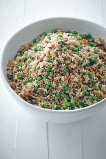 I love rice but often when I’m offered rice it is plain boiled. The rice we ate at home was always more of a meal on its own and not just an accompaniment to something else. We grew up with Persian rice, which is made by frying sliced potatoes in a pan before adding rice and dill. As the rice cooks, the potatoes become crusty. Then you turn the whole pot upside down onto a plate so that you’ve got a mound of rice covered by a potato crust–it’s amazing! Persian rice was the original inspirat