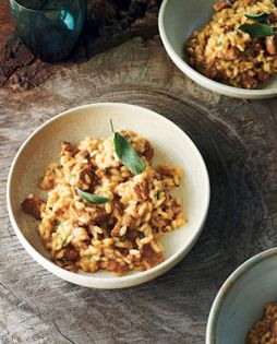There are many traditional rice dishes in Italy other than risotto. Rice has been grown in Sardinia for many centuries and this is how we traditionally cook it; it’s not risotto, because it isn’t finished with butter (mantecare in Italian). The name for this dish in my dialect is Risu cun Pulpedda (other dialects would say purpuzza); pulpedda are the little bits of pork meat leftover from making the sausages after the pig h