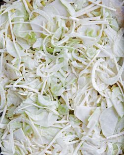 Rather like coleslaw, this salad is great tucked into a bun with a barbecued beef patty or a piece of grilled (broiled) salmon. It’s also good served with a roast chicken or smoked ham. For the dressing, use either the egg-free milk aioli or the mayonnaise from the dressings chapter or plain yogurt or crème fraîche (thick sour cream) – whatever you have to hand. Use a mandolin to slice everything as thinly as possible.