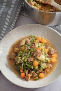 I have been holding off writing this recipe, as I haven’t been one hundred per cent sure what the definitive stovie recipe is. As it turns out, I don’t think there is one: no two recipes are the same. The common denominator seems to be stock, some sort of meat and potatoes. I have seen things like Lorne sausage going in, though more commonly it would be leftover Sunday roast beef or lamb. The differences are not even regional – it changes from family to family. My problem is I never, ever h