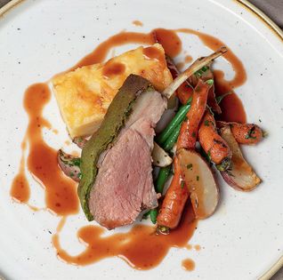 This recipe is a real classic. There is nothing more indulgent than a rack of lamb. It is very similar to a dish I did on MasterChef: The Professionals. The best bit, in my opinion, is the wonderful cheese crust – if you use a mature smoked cheese, the flavour it adds is incredible. When buying the lamb, ask your butcher to French-trim it.