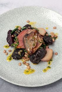 This is a very quick and simple recipe. Marrying pigeon with beetroot is a real classic combination. I like the addition of barley, as it adds a lot of texture to the dish and it also reminds me of evening walks in the summer where I live, watching the barley grow.