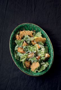 The trick here is to dry your lettuce well after you’ve washed it and to dress the croutons at the same time as the leaves. The croutons should be delicious little magnets for the Parmesan. It’s worth using a microplane, which produces light snowflakes of Parmesan, rather than an old-school grater.