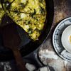Almost every Sunday my mom would serve us slices of hot buttered toast, warm cups of chai, and omelets or scrambled eggs seasoned with garam masala. Now I like to flavor my frittatas with garam masala, along with turmeric and chili flakes. Chopped bits of crisp bacon or sautéed leeks make nice add-ins.