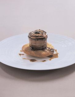 Prepare the beef: Using a sharp knife make an incision in the side of each beef portion to form a small, deep pocket in each. Mix together the foie gras trimmings and chopped truffle and season lightly with salt and freshly ground pepper. Divide the foie gras and truffle mixture between the pockets. Wrap a slice of prosciutto around each beef portion to hold the foie gras and truffle in place d