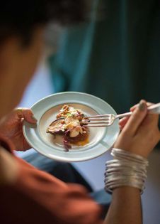 Pull out a jar of lime pickle from your pantry and whip up this simple but startling dish. Go to town on the yoghurt or crème fraîche and garnish liberally with whatever herbs you have on hand. Serve smaller aubergines as an hors d’oeuvre or larger slices as a vegetable main.