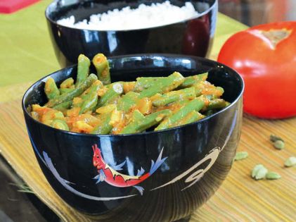 This curried green vegetable dish makes use of ingredients that are very likely locally grown wherever you live, rendering this exotic curry from a faraway land very doable at home. Spiced with fragrant coriander, curry, and ginger, these indian-style green beans are a great companion to a bowl of steamed basmati rice. Indians tend to like it a bit spicier, oilier, and cooked to the point that we in the United States would consider overcooked. In this version, the green beans are cooked for