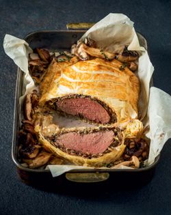 This is one of those impressive dinner-party dishes that I whip up when I’m feeling a little fancy. I hardly ever make my own puff pastry – it’s a long and tedious process. Instead I buy a good-quality all-butter puff pastry, and the proof is in the flavour. I serve my Wellington medium-rare, but if you like it more well done, just cook it for longer.