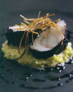 You would normally pair fish with white wine so it might seem unusual to use red wine in this dish but, trust me, it works. The acidity in the red wine acts in the same way as lemon juice and cuts through the richness of the fish. This will work with all meaty fish like turbot or brill. If you prefer not to deep fry the leeks, skip step 5.