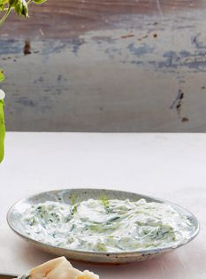 This works well as a mezze dip for cosy nights in or as an easy sauce to accompany grilled fish, meat and vegetables. In Scandinavia we often refer to dill as the ‘garlic of the North’ – this tzatziki recipe forgoes mint in favour of the more pungent dill. If you prefer other herbs then feel free to mix it up. (