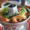 Aromas of lemongrass, kaffir lime leaves and galangal waft through the dining arena where this lightly sweet, spicy, brothy treasure is served. On my last journey to the small city of Lumnaria in the Lopburi province of Thailand, the family of one of my former students, Fah Vorarittinapap, showed me how rural Thais add a natural layer of sourness with chopped young tamarind leaves. Alas, we don’t grow tamarind in the West, so we use fresh lime juice.