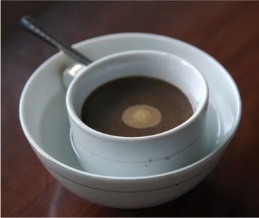Imagine a triple shot of espresso, resting on top of a thick layer of sweetened condensed milk. Give this stir, and the jet-black brew slowly gives way to a rich, chocolaty brown, bittersweet brew. Slowly sip the intense brew and begin to feel your palate and body come alive . . . this is Vietnamese coffee. Trung Nguyến is the most notable brand available in Vietnam (now sold in the U.S.), but many Vietnamese Americans prefer Café du Monde coffee from New Orleans, which has chicory r
