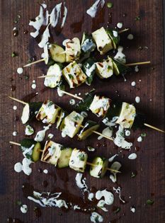 A great vegetarian option/or a barbecue or a simple summery lunch. Stir lemon zest, toasted, flaked almonds or chopped pistachios through a bowl of couscous to serve alongside, or just griddle or roast some red peppers.
