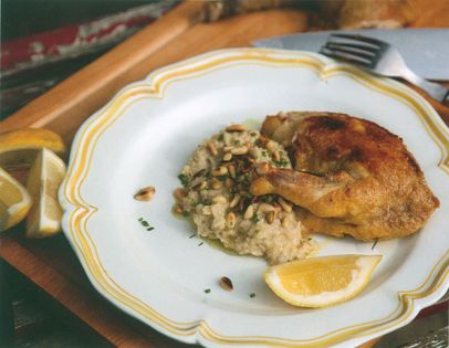 This velvety purée with crisp grilled guinea fowl on top is most delicious and quick to prepare.