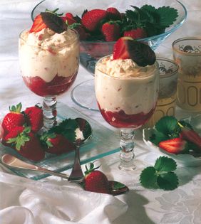 Wash and thoroughly dry the strawberries and set three aside for decoration. Remove the stalks from the remaining strawberries. Roughly chop the fruit, place in a bowl and add the caster sugar and liqueur. Toss well, cover with plastic wrap and refrigerate overnight.