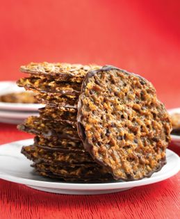 Simple, sweet, and shatteringly crisp, each elegant caramelized cookie could make a gorgeous accompaniment to fresh berry parfaits or scoops of ice cream. Smear a thick layer of chocolate between two of those dainty disks, and now you’ve suddenly got a solo showstopper on your hands. Still hot out of the oven, the pliable rounds can also wrap up in tightly curled cigars, or molded over metal cupcake tins to make edible bowls. It’s hard to beat the standard sandwich though, which has the ide