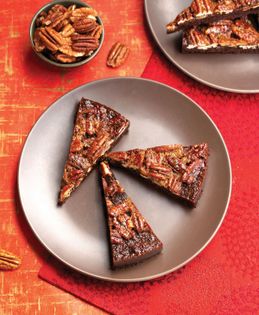 Rich, velvety chocolate, dark caramelized sugar, and crunchy toasted pecans were simply made for each other. The “turtle” moniker for this unbeatable trio came from palm-sized candies originally shaped somewhat like their namesake animal. Though cute in a crude sort of way, I can’t understand why you’d want to eat a turtle in the first place, even if it was a sweet confection. Titles aside, this combination of ingredients is a real knockout, reptilian in nature or not. Proceed with caution: