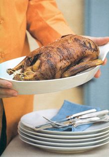 This recipe yields a succulent roast duck, every morsel of which is tender and tasty, and as a by-product, a good half pint of duck fat. No cook worth her salt would waste a scrap of this precious substance, which is kept in a pot in the fridge and used for frying and flavouring.