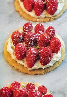 If serving for dinner, make the pastry in the morning or afternoon. Mix the flours with a good pinch of salt and rub in the butter (can be done in the processor). Mix in the sugar until the mixture comes together into a crumbly ball. Shape into a squared-off sausage and refrigerate for about an hour until just firm.