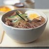 The refreshing properties of this wonderful chilled broth, naengmyun, make it a perennially popular dish in the heat of summer. The buckwheat noodles float in a traditional soup which is distinctly flavoured by mustard and rice vinegar, and topped with matchsticks of crunchy Chinese radish.