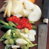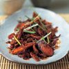 This simple dish, called cheyuk bokum, is quick to prepare and makes thinly sliced pork fabulously spicy. The potent flavour of gochujang chilli paste predominates in the seasoning for the pork that will set the tastebuds aflame. Serve with a bowl of rice to help counterbalance the fiery chilli character of the dish.