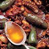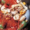 Here octopus is stir-fried to give it a rich meaty texture, then smothered in a fiery chilli sauce. The dish combines the charred octopus flavour with gochujang spiciness and the zing of jalapeño chillies. Serve with steamed rice and a bowl of soup.