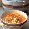 The underlying fiery spiciness of this dish, called sundubu chige, emphasizes its seafood flavours. Clams and prawns are served in a piquant soup with a medley of vegetables, with creamy tofu melting into the rich sauce.