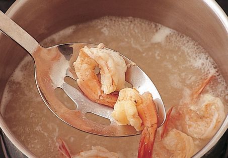 Pour the fish stock or water into a medium pan, set over a high heat and bring to the boil. Cook each type of seafood separately in the stock for 3-4 minutes. Remove with a slotted spoon and set aside to cool.