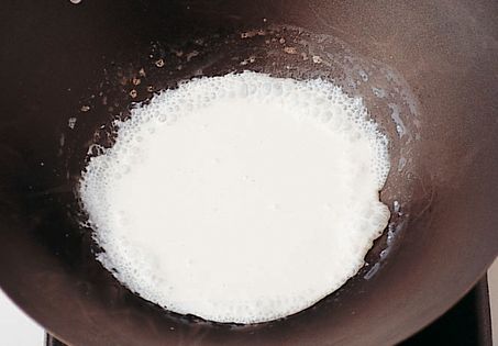 Pour the coconut cream into a large wok or frying pan and bring to the boil over a medium heat. Continue to boil, stirring frequently, for 8–10 minutes, until the milk separates and an oily sheen appears on the surface.