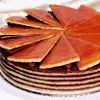 For the chef, a perfectly prepared Dobos torte, one of the most popular classic cakes all over the world, is a great show of talent. Spreading hot sugar over a thin sponge layer is impressive in itself, but cutting the layer into precise pieces before the sugar hardens and cracks is even more of an accomplishment. Dobos torte is not a practical cake, however, because you must make many thin sponges. I use only 6, but Hungarian cookbooks refer to anywhere from 8 to 12. Also, the caramelized