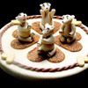 Soften the marzipan by mixing in the kirschwasser. Add the sugar and egg yolks and place over simmering water. Whip until the mixture is light and fluffy. Remove from the heat, then continue whipping until cool.