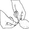To clean the squid, hold the sac in one hand and pull off the head and tentacles with the other. Some of the insides will come away with the head. Cut off the tentacles in front of the eyes. You will feel a tiny hard lump at the top of the tentacles: squeeze it out and discard. Reserve the tentacles. Remove all the rest of the insides of the sac, including the long, flexible quill, and discard.