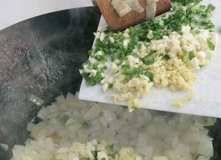 Heat the sunflower oil in a wok over a medium heat and add the onion. Fry for about 8-9 minutes or until the onion turns golden brown, stirring regularly.