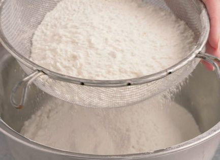 Sift the flour into a large mixing bowl and add the baking powder, salt and sugar.