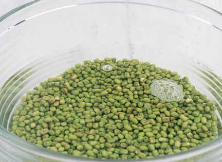 Wash the mung beans in several changes of water, then transfer them to a large bowl, cover with cold water and soak them for 6-8 hours or overnight.