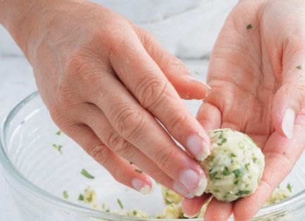 With dampened hands, make about 16 equal-sized balls from the mixture.